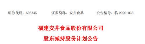 安井食品公司董事兼总经理张清苗先生计划自2020年6月30日起直至2019年12月27日通过集中竞价方式或者大宗交易方式减持数量不超过2,000,000股(约占公司总股本的0.8461%)。