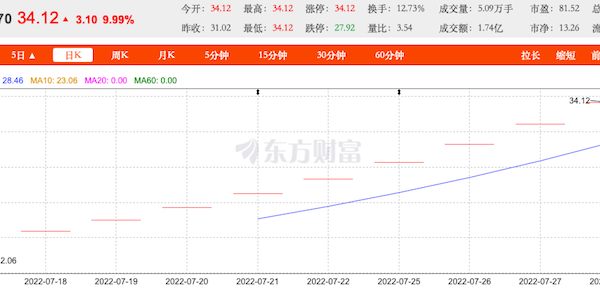 7月15日成功登陆A股的宝立食品(603170.SH)在这个夏天感受到了资本市场的热情。该公司IPO发行价格为10.05元,上市首日即涨停。截至7月28日收盘,宝立食品已经连续收获10个涨停,股价涨至34.12元,静态市盈率达到73.61倍。