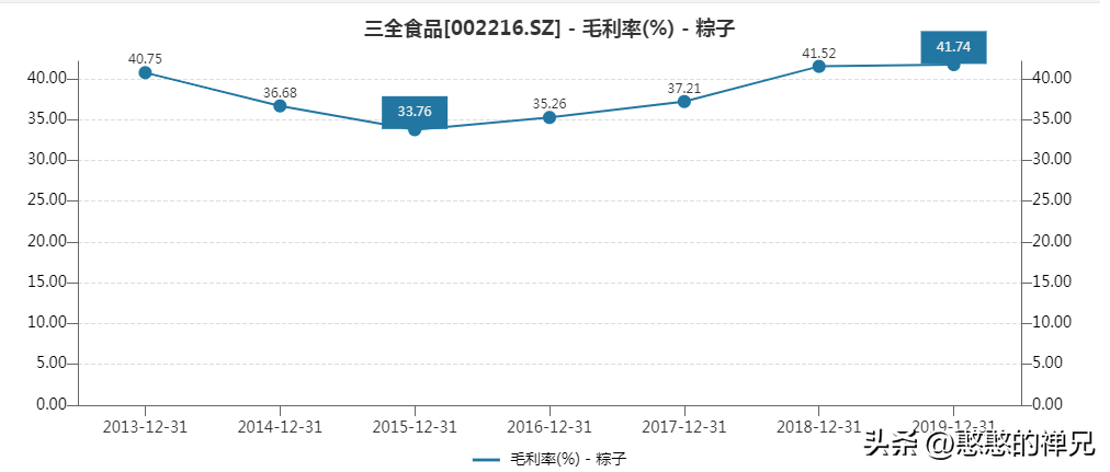 粽子的毛利率2018年后稳定在40%以上,之前毛利率不稳定,变化幅度不小。