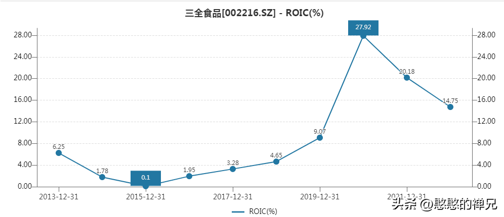 1、三全食品经营不稳健,投入资本回报率大起大落。