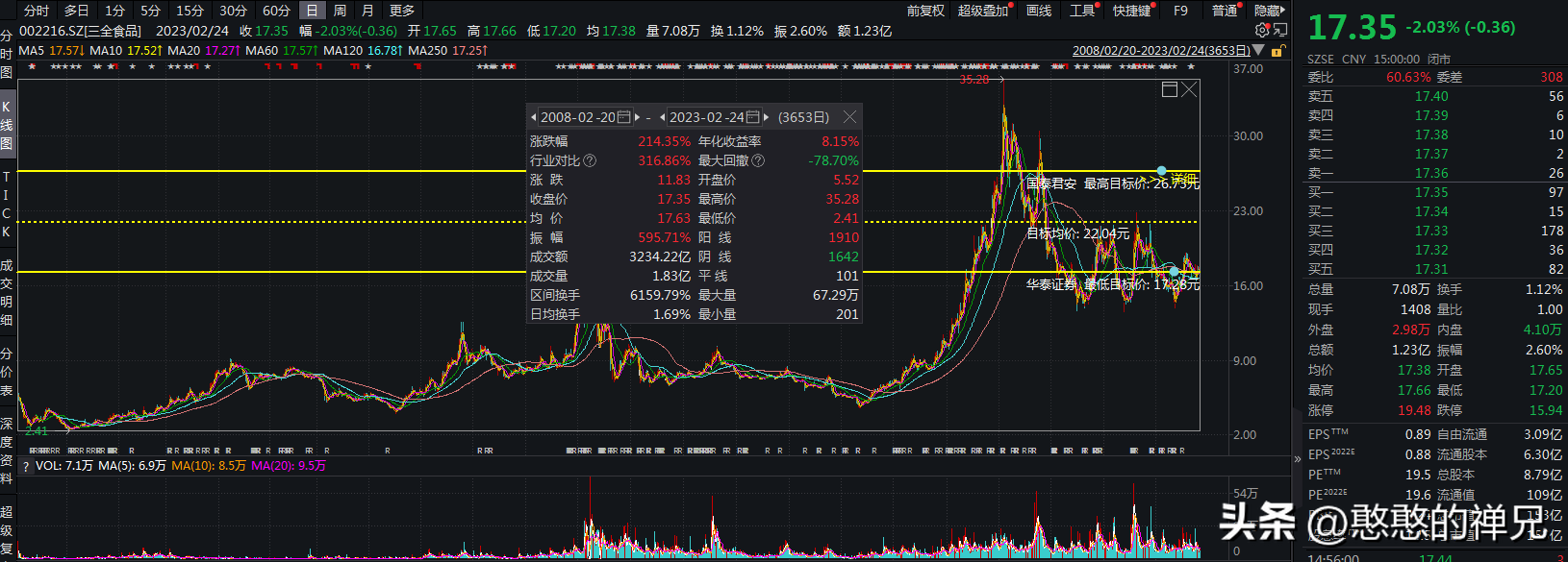 当前股价17.36元,按最乐观情况25倍市盈率估值,未来涨幅空间40%-58%,但是也对应着相应下跌风险,预计15%左右回撤,风险报酬比2.6-3.8。如果算上1-2年时间成本,这笔投资不是理想的投资,最好的办法就是等回撤,如果能下跌到13元以下,性价比就高的不得了。